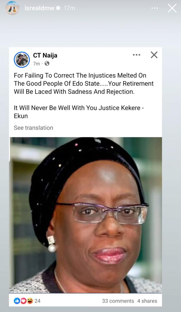 Logistics manager, Israel DMW, has responded to the Supreme Court defeat of former PDP governorship candidate, Asue Ighodalo, earlier today, July 10.
