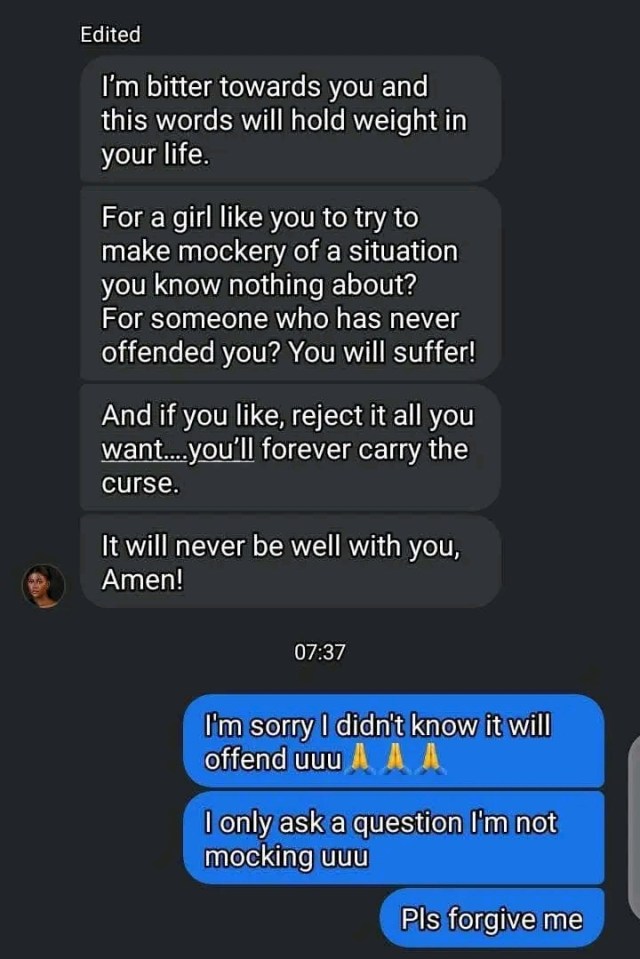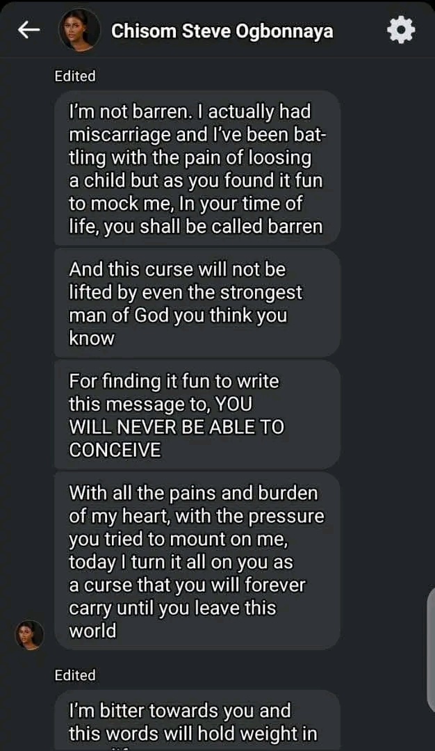 In the exchange between the actress and the troll shared online, the actress laid curses on her.