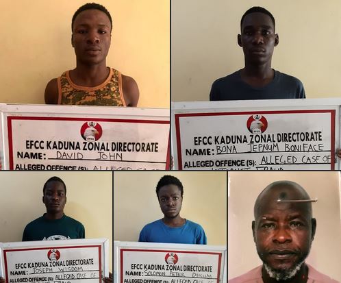 Justices M.J. Zubairu and Amina Bello of the Kaduna State High Court have convicted and sentenced Mukaila Kunle Olarinoye, Solomon Peter Dikum, Joseph Wisdom, Bona Jepnum Boniface, and David John to prison for their involvement in fraud.