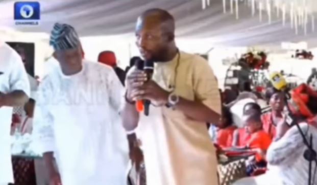The LGA Chairman was asked to speak to the guests at the reigning monarch's inauguration ceremony in his community.