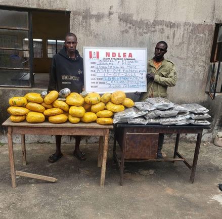 Recovered from them include 26kg Ghana Loud, 123 grams of methamphetamine, and 45 grams of Molly, as well as their delivery van with registration number AJK 191 LG.