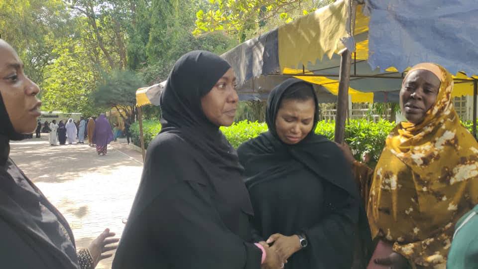 Fatima looked distraught as she was comforted by relatives and close friends, including prominent APC member, Maryam Shettima