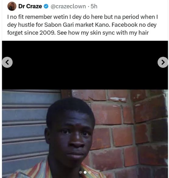 Sharing the image via X, Craze Clown wrote: “I no fit remember wetin I dey do here but na period when I dey hustle for Sabon Gari market Kano.