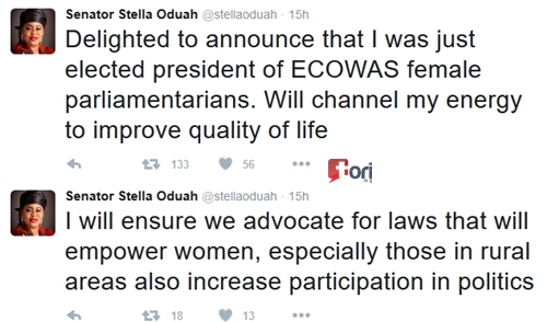 The influential PDP politician who pledged to use her office to advocate for laws that will empower women, especially those in rural areas and to also increase participation in politics, made the announcement via her official Twitter handle, @StellaOduah.