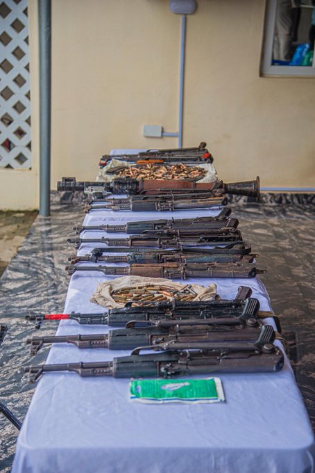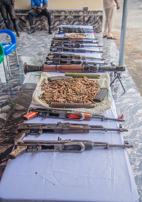 "In a swift follow-up clearance operation, the operatives stormed Abinsi town and successfully apprehended Jacob Adikwu on 16th July 2025 and recovered three (3) AK-47 rifles, 220 rounds of live ammunition and a volkswagen car from his hideout. Further investigation carried out by the operatives on the 17th July 2025, led to the recovery of additional five (5) AK-47 rifles, one rocket launcher, and 1000 rounds of live ammunition from the same arms dealer."