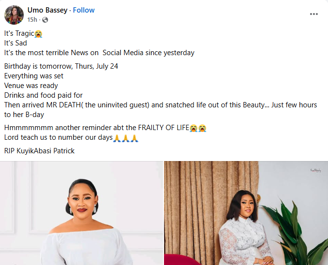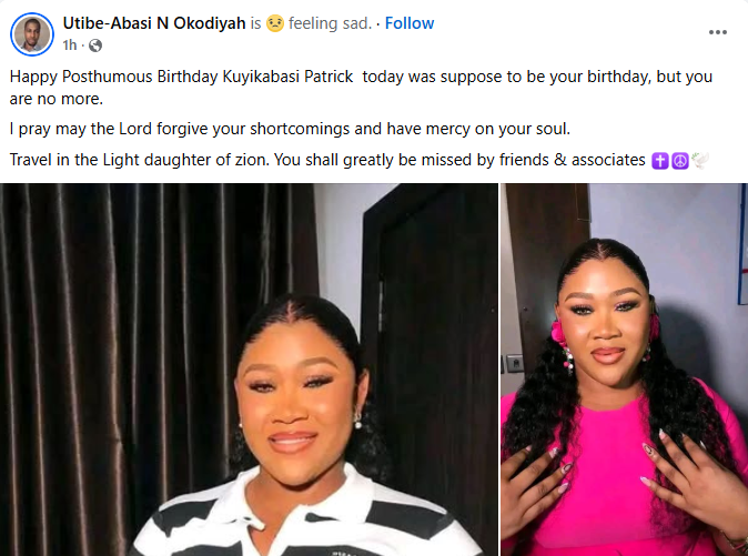 Sharing her photos on Thursday, one of her friends, Ceedar Inee, wrote, "Happy birthday In heaven my darling sister and friend. May the light lead u home. U have broken my heart n caused me so much tears. It’s well. May you find rest Amen. Our times together will remain treasured. Wen u came home to see me on Sunday I didn’t know that wud be our last time seeing Mayb the hug wud have been a long one. U wud call me ur sister and tell me Omo we will get there in life. So all the tings we talked about on Sunday na so e just end??? I miss u so much ! Wish it was a dream I wud be awake long ago .. Kai. Life is not promised u have confirmed this to me. All ur voicenotes on my phone I now play them n cry. My desire is for u to rest well Amen," she wrote.