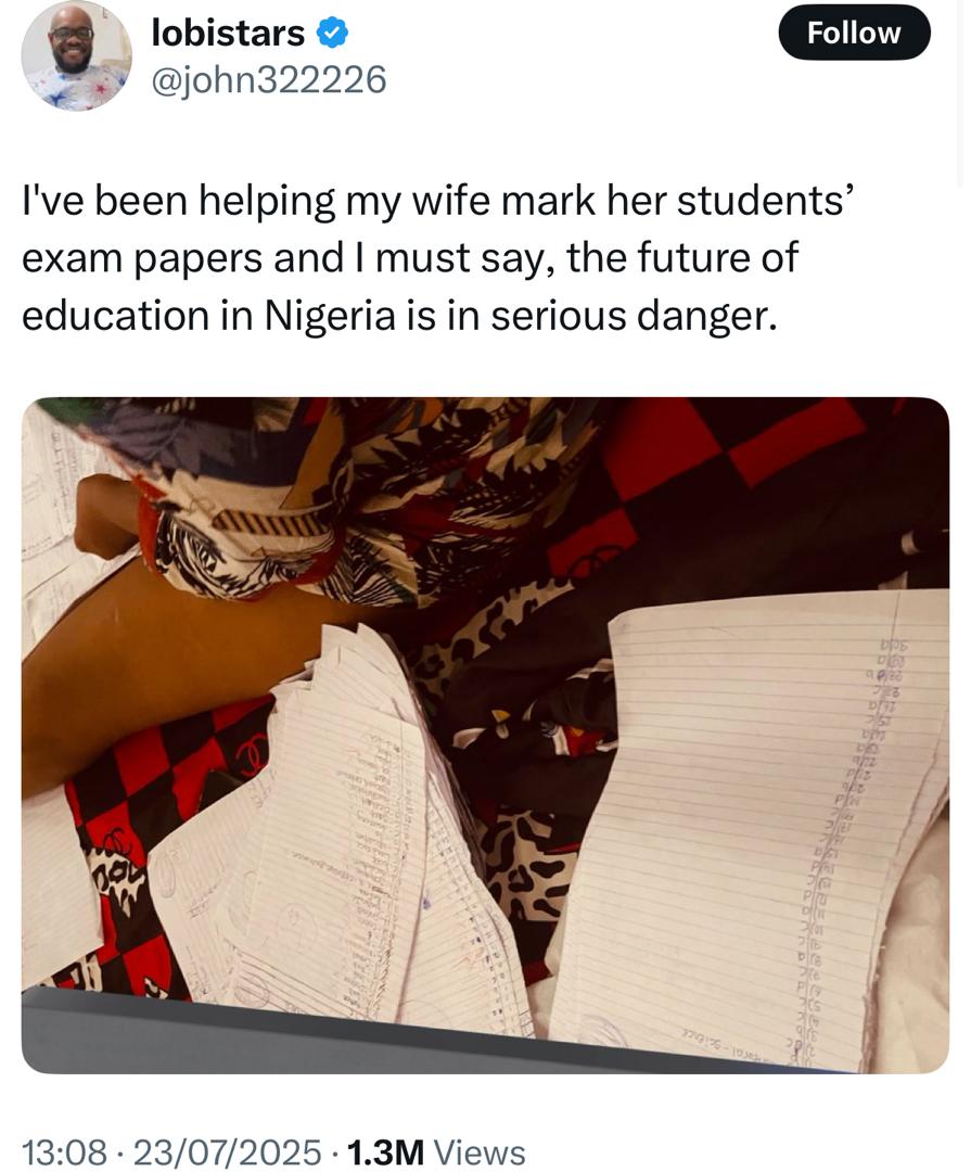 A Nigerian man has taken to he social media platform, to X to voice his concerns about the declining state of education in the country following the mass failure of the students.