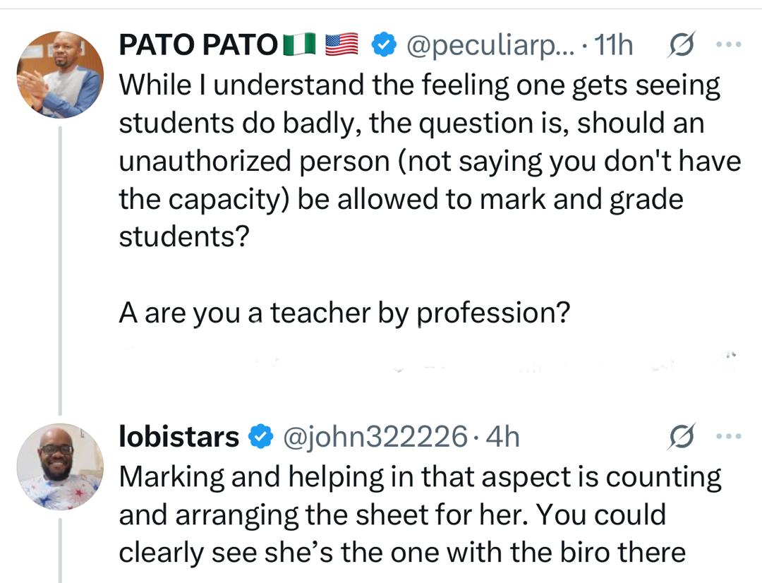 Some X users however felt that it was out of place for someone who is not a trained teacher to be handed the scripts of pupils to mark and grade.