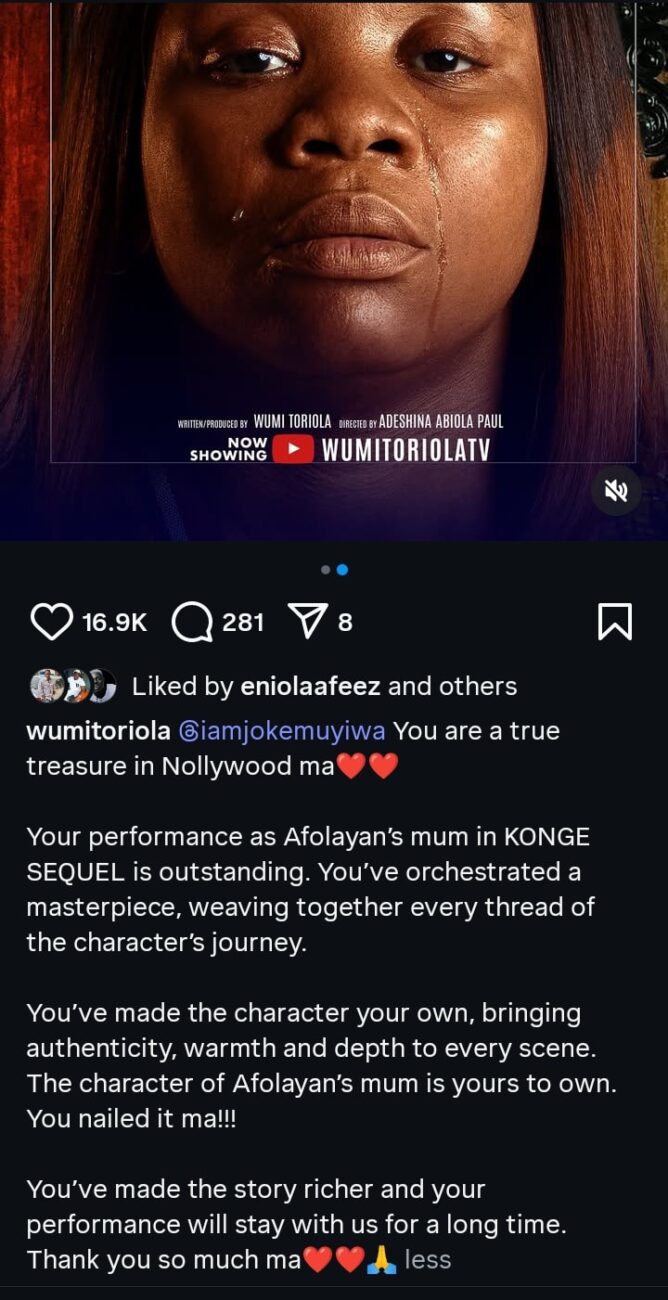 Your performance as Afolayan’s mum in KONGE SEQUEL is outstanding. You’ve orchestrated a masterpiece, weaving together every thread of the character’s journey.