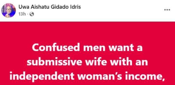 Nigerian woman, Uwa Aishatu Idris, who is the daughter of Alhaji Gidado Idris, the late Secretary to the Federal Government (SGF) during the regime of late General Sani Abacha, slammed a category of men.