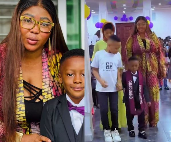 Nollywood actress Omowunmi Ajiboye has celebrated on her Instagram page after her son, Segun Ogugbe graduated from Nursery school.