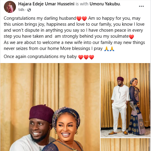 She took to her Facebook page on July 11, 2025 to show to her husband, Umoru Yakubu, following his recent marriage.
