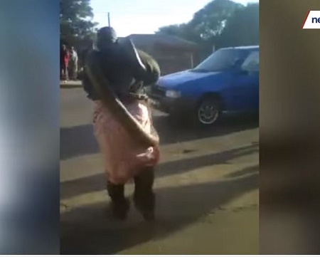 A man has left many people in fear after he emerged from his car with a giant python wrapped all over his body. According to reports, the man came to the area to perform rituals and after he stepped down from his car, he could be seen using his horsetail to scare away evil spirits. The incident happened in South Africa.