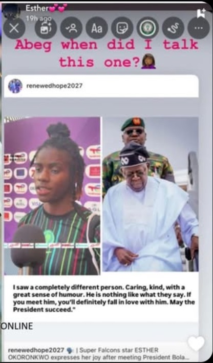 The post, shared by a political-themed page, claimed that Okoronkwo had praised President Bola Ahmed Tinubu, describing him as “caring, kind, with a great sense of humour,” while encouraging Nigerians to “fall in love with him” if they met him in person.