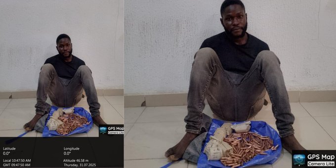 The incident occurred at about 9:45 a.m. on Thursday, July 31, 2025. The soldier was found with 350 rounds of 7.62mm special ammunition concealed inside a sack bag.