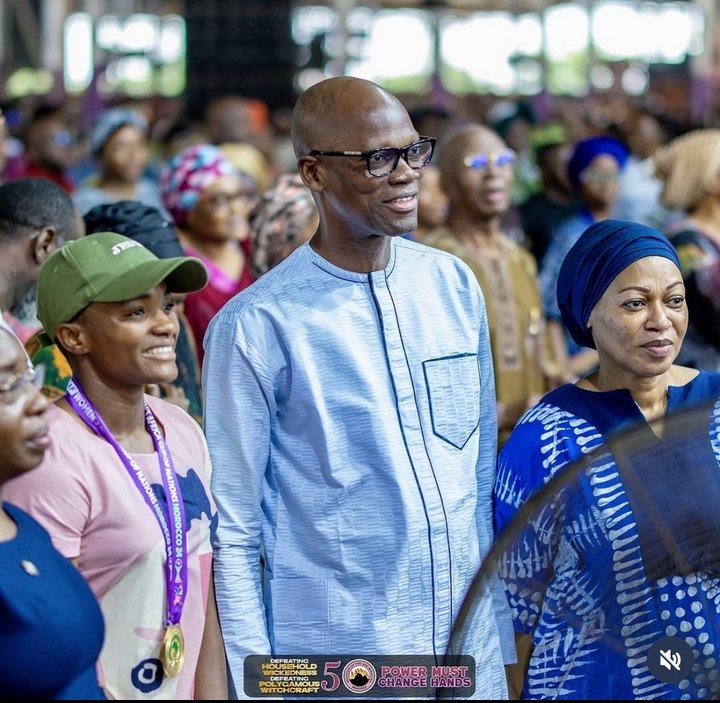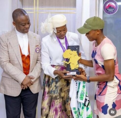 During the ‘Power Must Change Hands’ service, Ajibade presented her winner’s medal and awards to the church’s General Overseer, Pastor Daniel Olukoya, and his wife, as a gesture of thanksgiving.