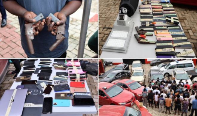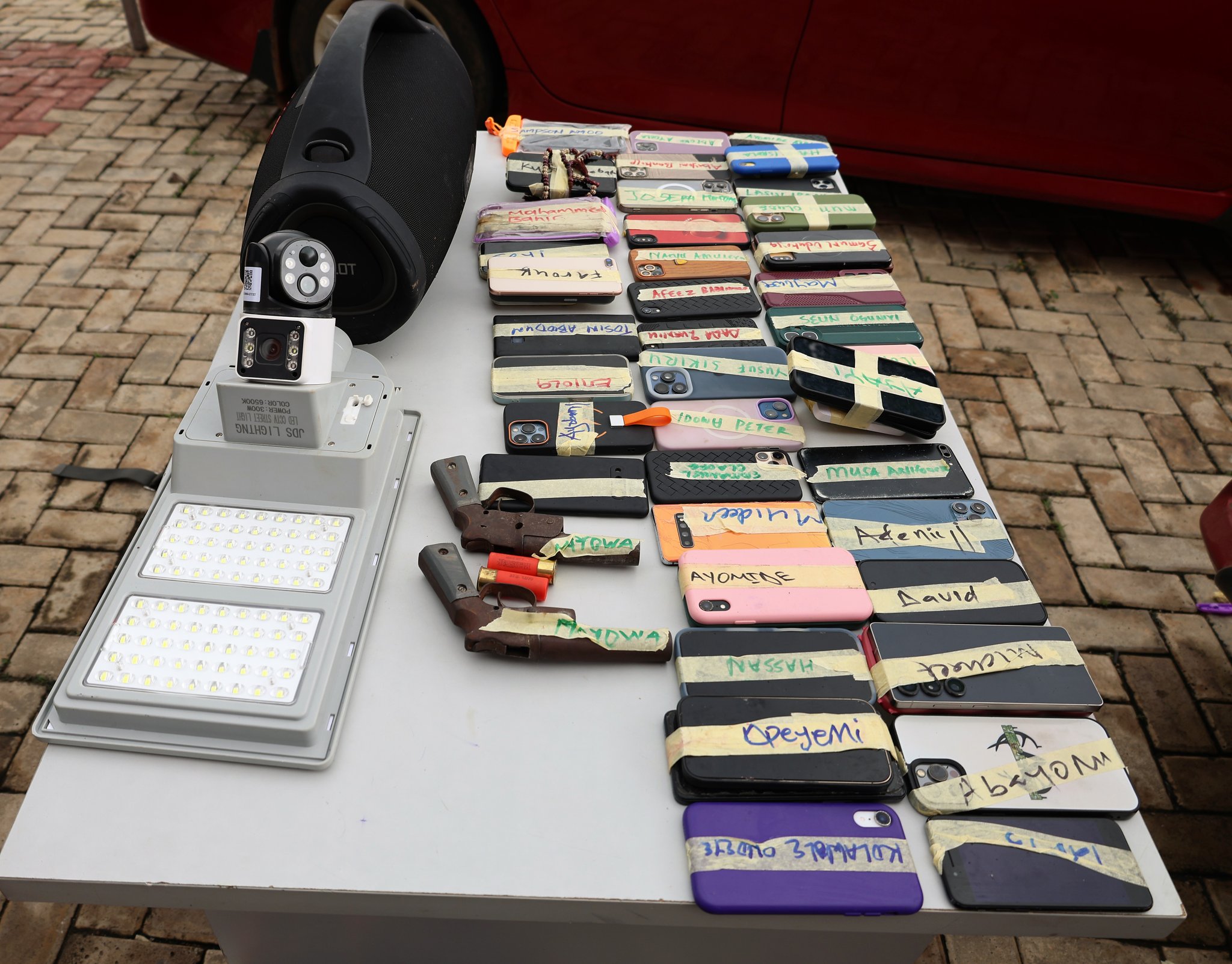 Items recovered from the suspects include six exotic cars, two locally- made pistols, one motorcycle, several mobile phones and laptops, incriminating documents, eighty-nine unclaimed phones among others.