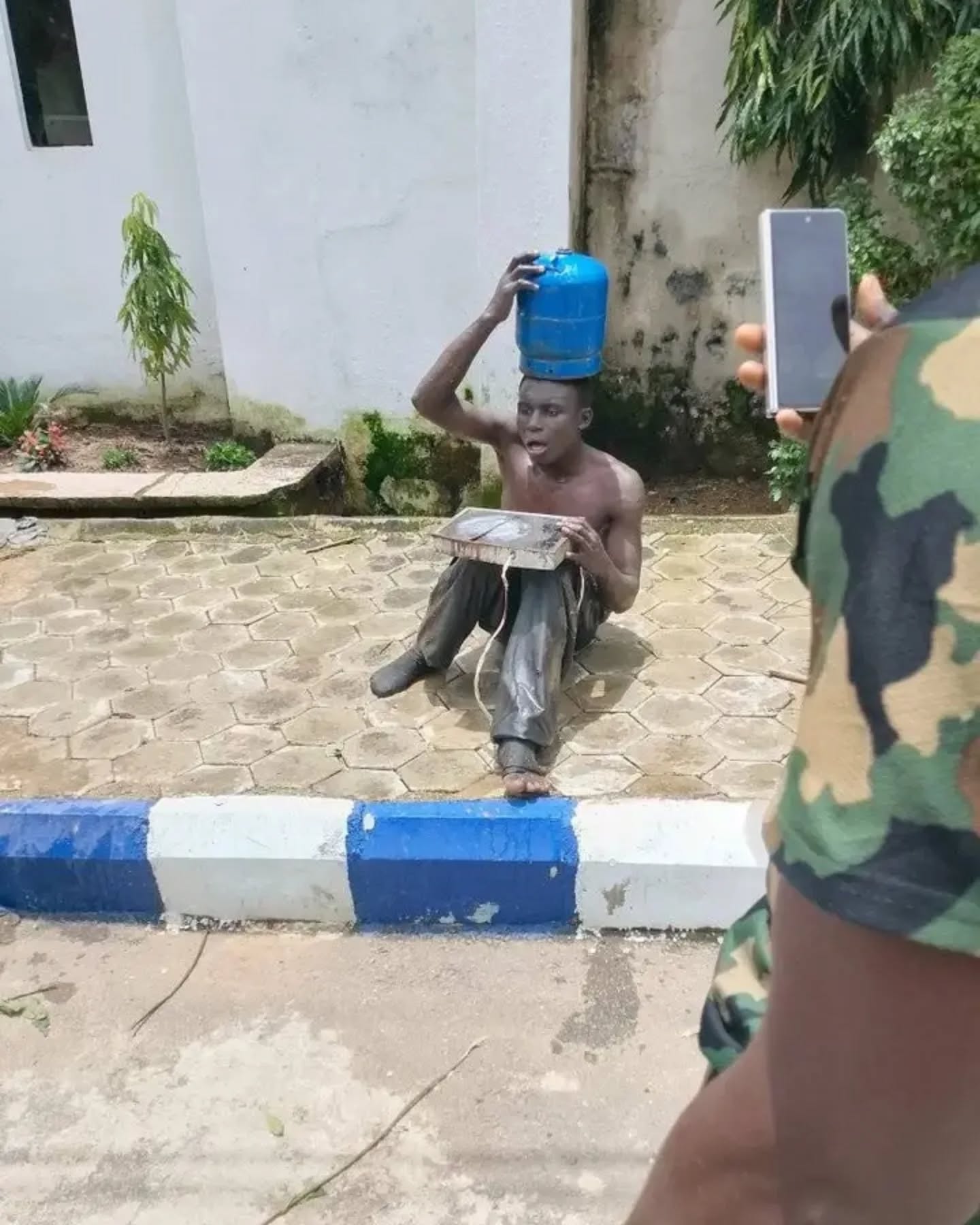 Photo of a young Nigerian man, has gone viral online after he was allegedly caught stealing.