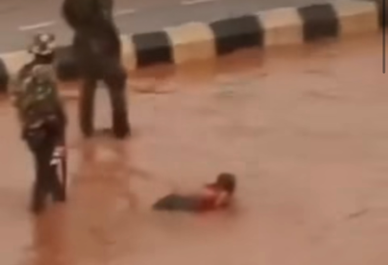 Some powerdrunk Nigerian soldiers have been seen forcing a driver to swim in muddy water along Nsukka Road, Enugu state.