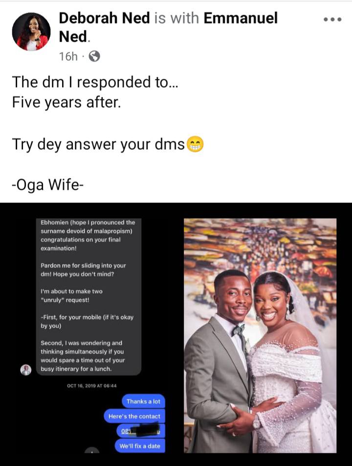 A Nigerian woman, Deborah Ned, has urged women to make it a habit to respond to their DMs.