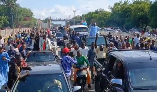 Videos shared via his official X (formerly Twitter) handle showed cheering crowds lining the streets as the former Sokoto State governor made his way into the city.