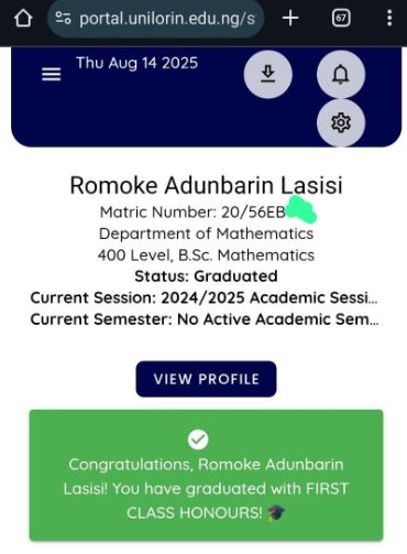 Adunbarin graduated with a first class honours in Mathematics from the University of Ilorin, Kwara State, four years after she narrated how a colleague questioned her for being comfortable posting photos of herself in a cleaning uniform.