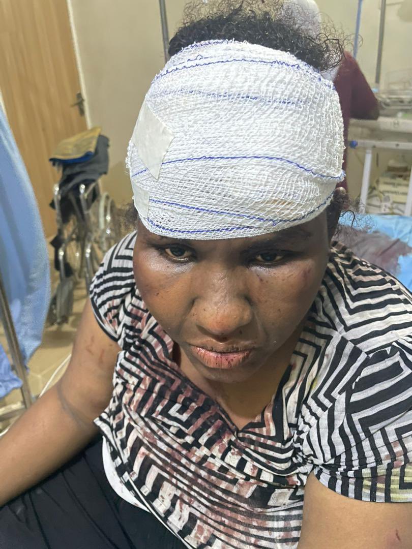 Laying on a hospital bed, her body marked with bruises, her face swollen, her voice weak, Fatima recounted how the suspects, who are her next-door neighbours allegedly beat her with sticks and iron rods until she passed out, after a confrontation between them about their children.