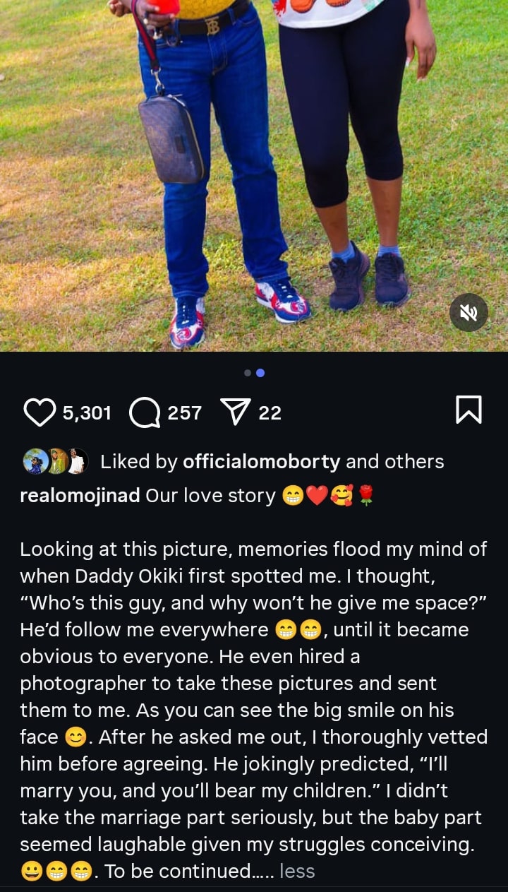 Taking to her Instagram page to share throwback photos of her and her husband, Jinad recounted how her husband first spotted her.