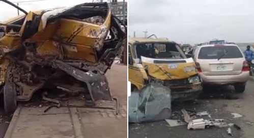 An unidentified driver has d!ed after his Toyota Highlander rammed into a commercial bus illegally picking passengers along the roadside at Volkswagen bus stop, inward Mile 2, Lagos.