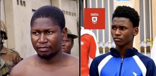 Photos seen by Zagazola show a young, short and slender man in a blue tracksuit, bearing a striking resemblance to the late Boko Haram leader, standing among far older suspects.