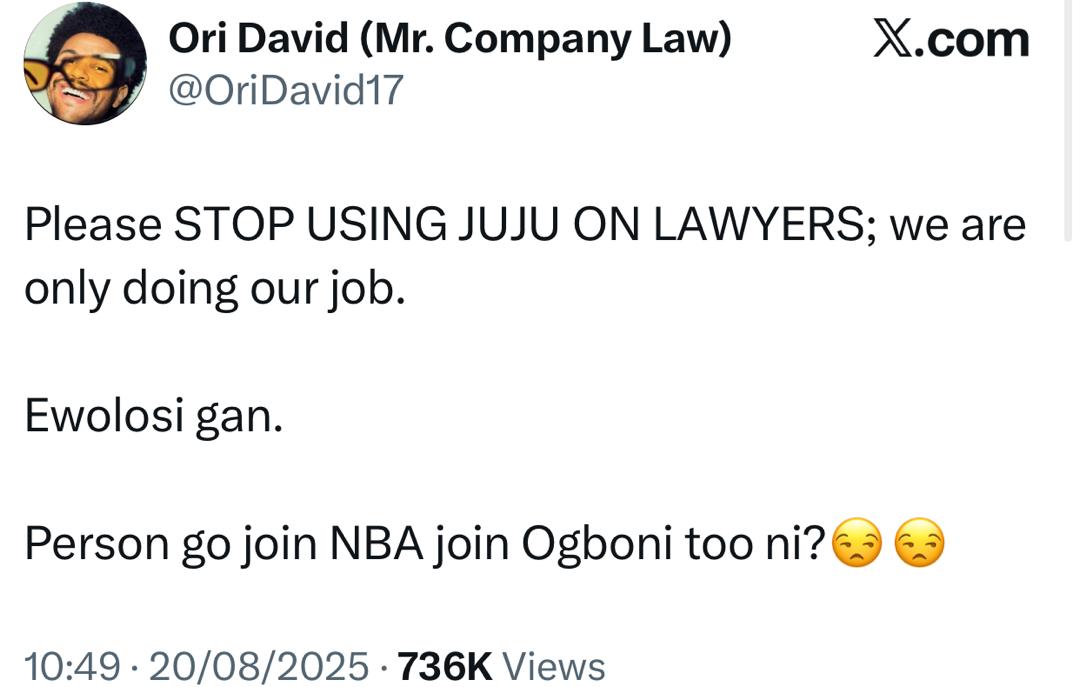 One lawyer took to X to appeal to people to stop using ‘’juju'' on lawyers as they are only doing their job.