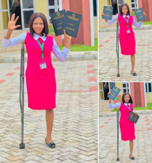 A physically challenged Nigerian lady, Oluwaseun Enny, has expressed heartfelt gratitude as she successfully concludes her academic journey at Kogi State Polytechnic.