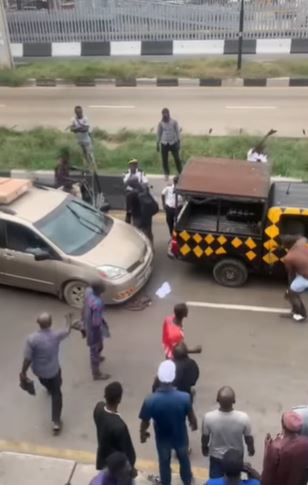 A video capturing the moment motorists confronted and attacked Vehicle Inspection Officers (VIO) in the Mile 2 area of Lagos State has surfaced on social media.