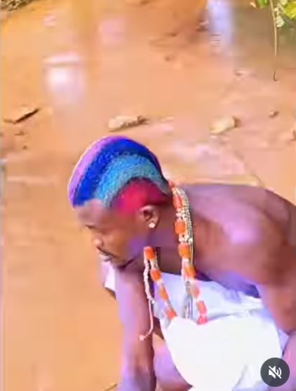 Street singer Portable has sparked reactions online after posting a video of himself performing ritual rites by a river.
