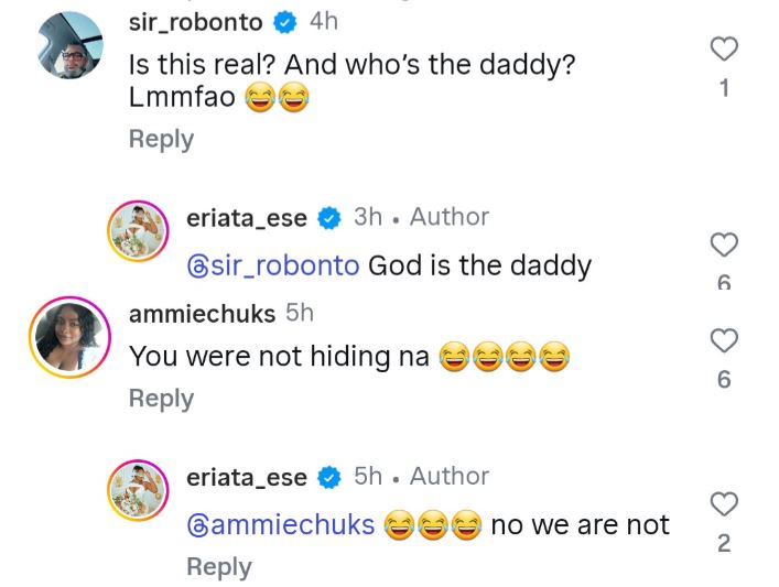 Nigerian realty TV star, Eriata Ese has replied to followers criticizing her after she revealed a “baby bump.”