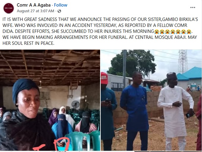 Ramatu, a middle-aged woman has been k!lled while riding a motorcycle back from her farm in the Abaji Area Council of the Federal Capital Territory (FCT).
