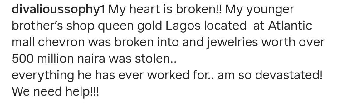 A Nigerian businessman, who is completely devastated, has spoken out after burglars raided his jewelry store, stealing items valued at over ₦500 million.