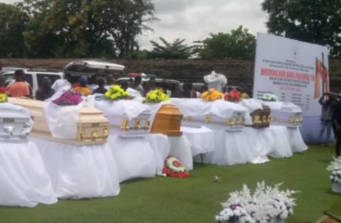 Tears flowed as the caskets of the deceased were lined up for a state funeral service on Thursday at Unity Square, Abakaliki, the Ebonyi State capital.