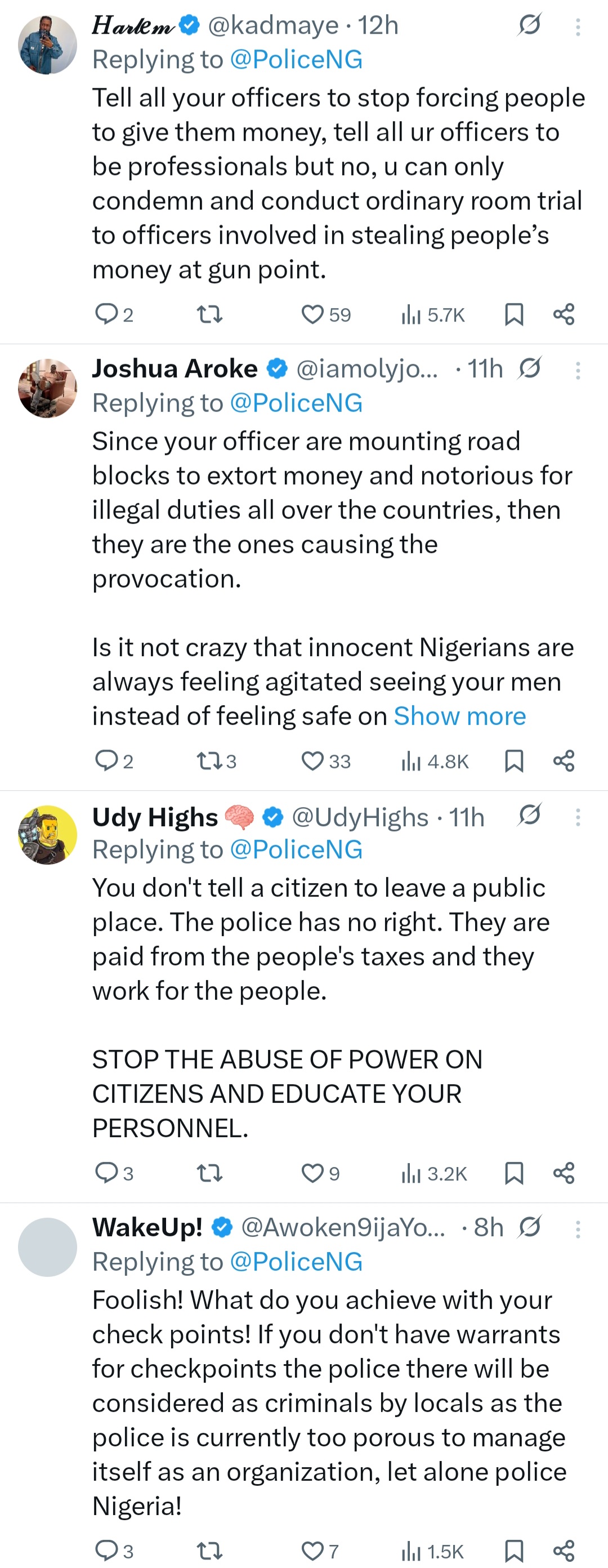 However, Nigerians on social media slammed the police accusing them of setting up illegal road blocks to extort innocent citizens.