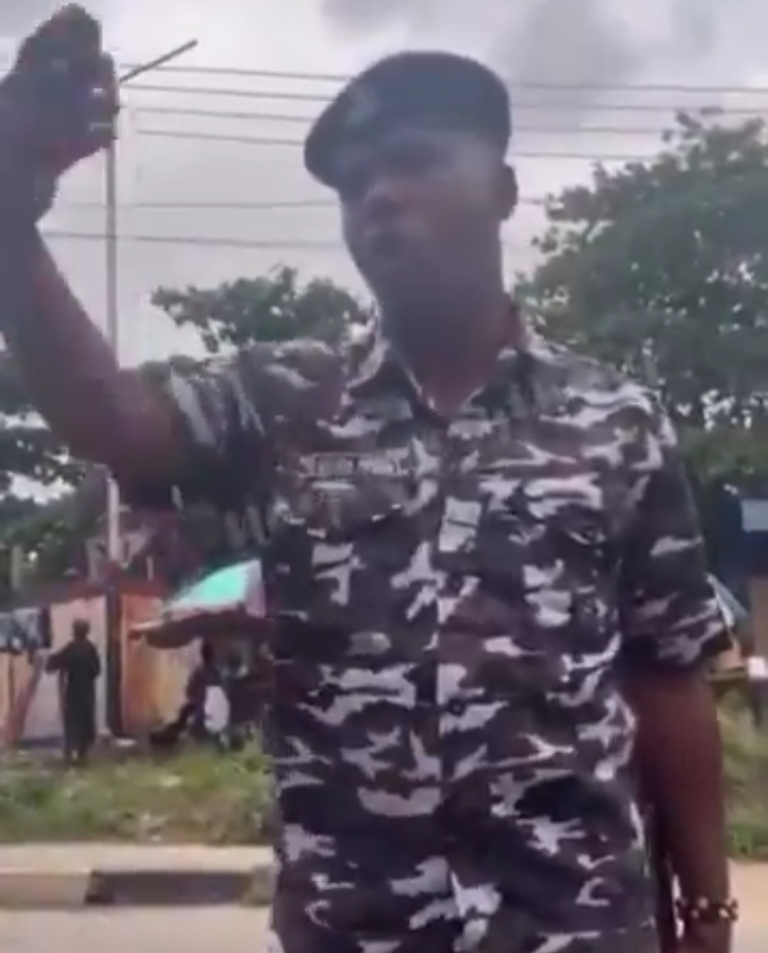A video of Nigerian police officers blocking a road on alleged illegal duty has gone viral on social media.