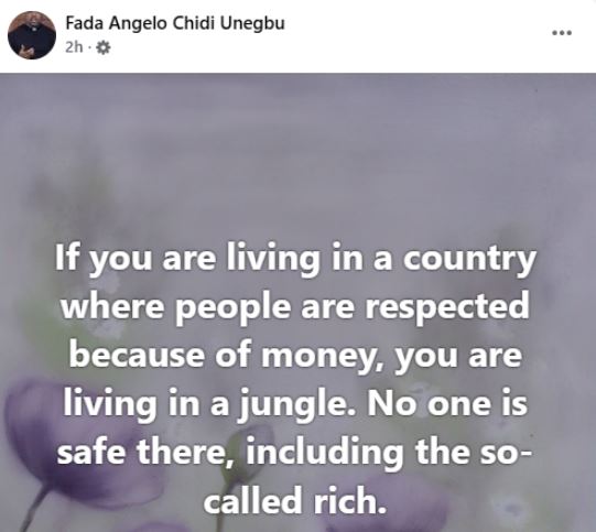 Rev. Fr. Angelo Chidi Unegbu, a Germany based Nigerian Catholic priest, has stirred reaction after an interesting comment he made about respect and money.