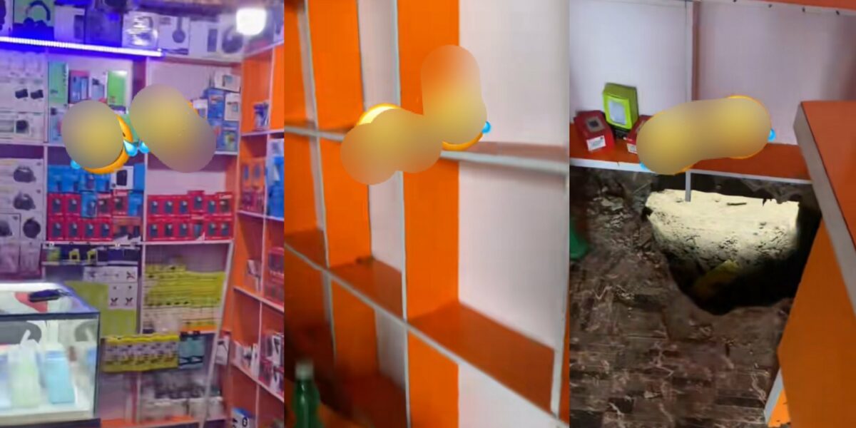 In a video he shared on Tiktok, he revealed that the thieves dug a whole underground to gain access to the shop.