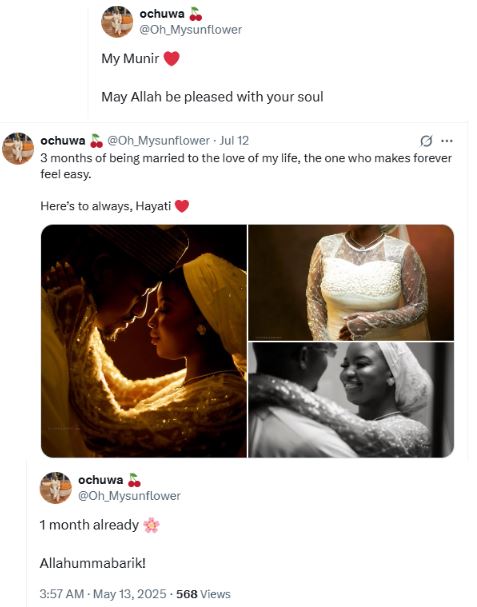 A Nigerian woman, Ochuwa, is grieving the de@th of her husband, who passed away just five months after their wedding.