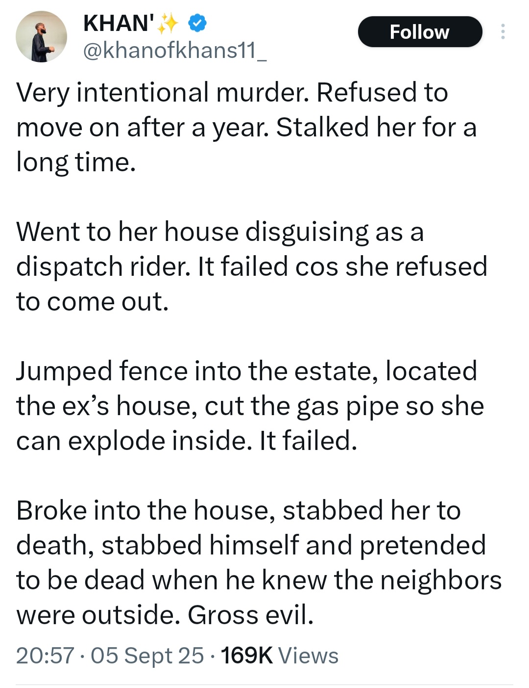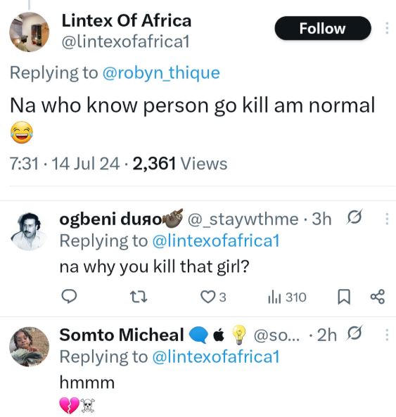 Several old tweets by Lintex Ogale, the man who k!lled his ex-girlfriend in Lagos, have resurfaced and are drawing attention following news of the crime.