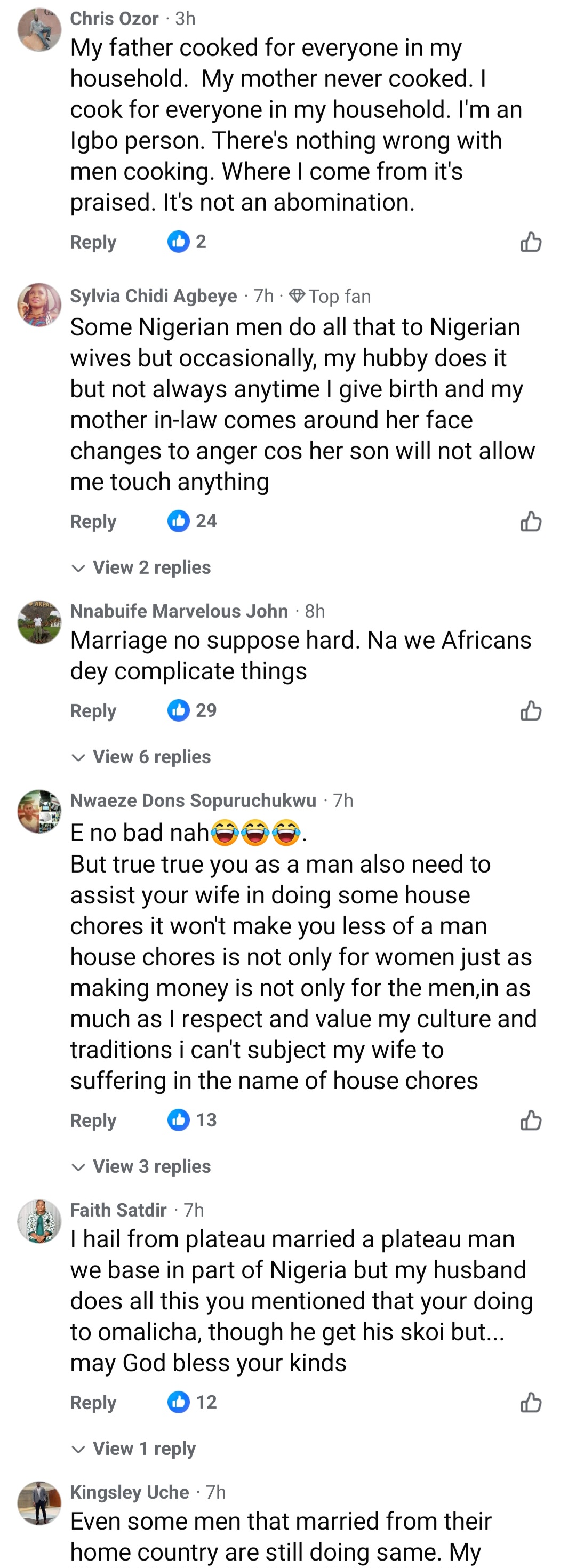 "Also… if you marry oyibo, you will likely miss your entitled free labor that our women do.