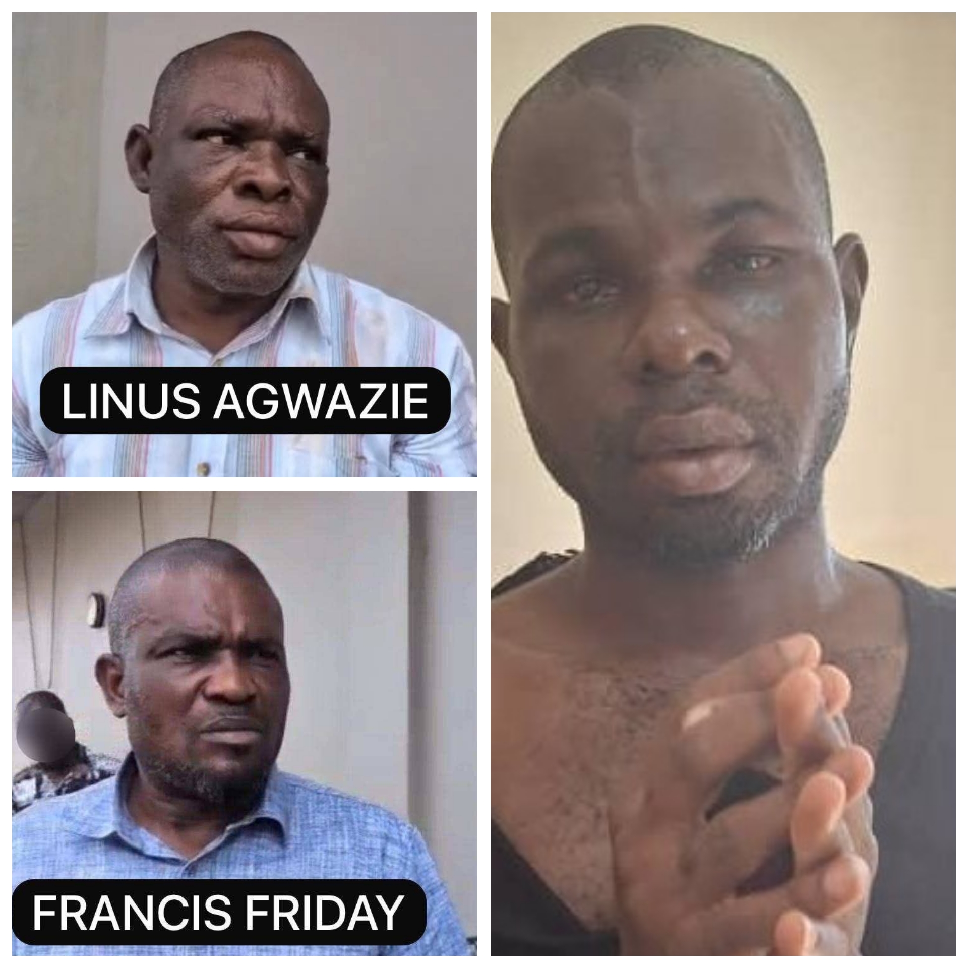 Francis Friday, Linus Agwazie, and Russell Ekenze were arrested on 20 June 2025 and later arraigned before various circuit courts in Kumasi.
