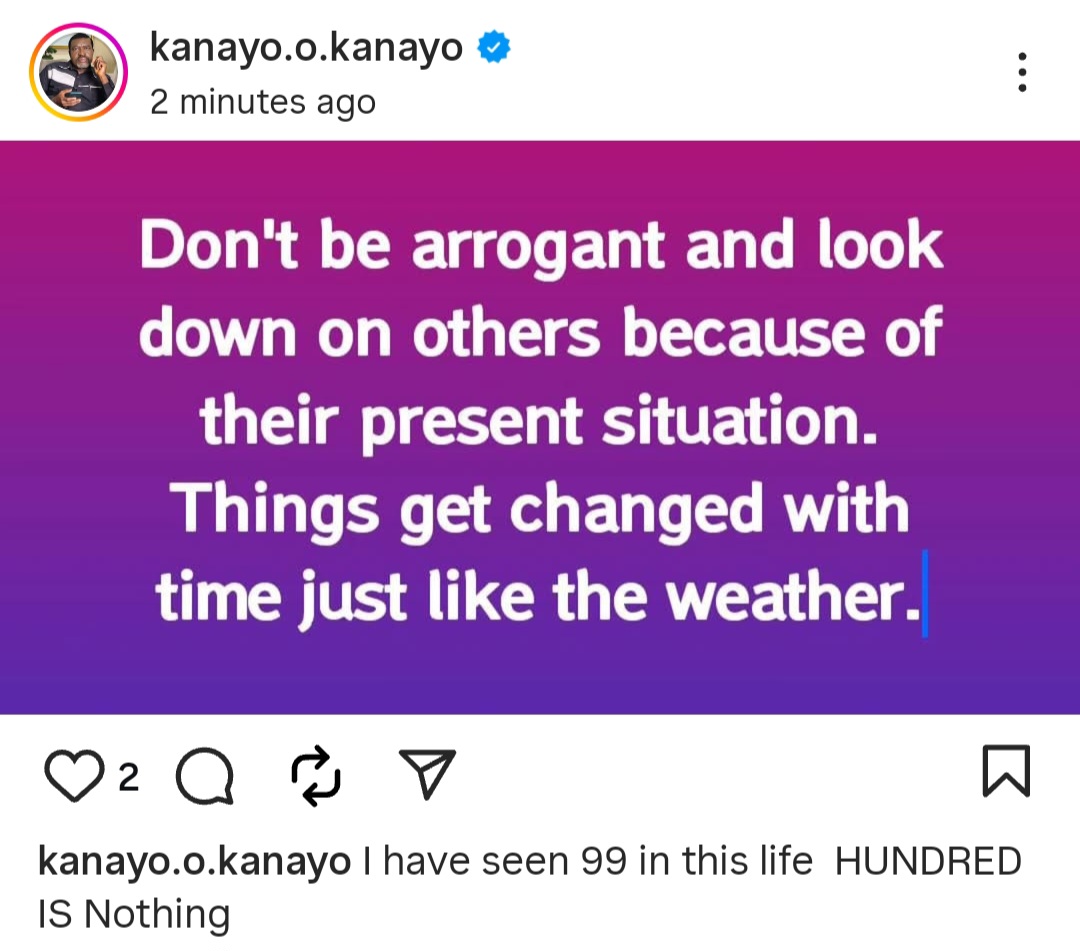 The actor stated this in a post on his Instagram page and wrote: "Don't be arrogant and look down on others because of their present situation. Things get changed with time just like the weather."