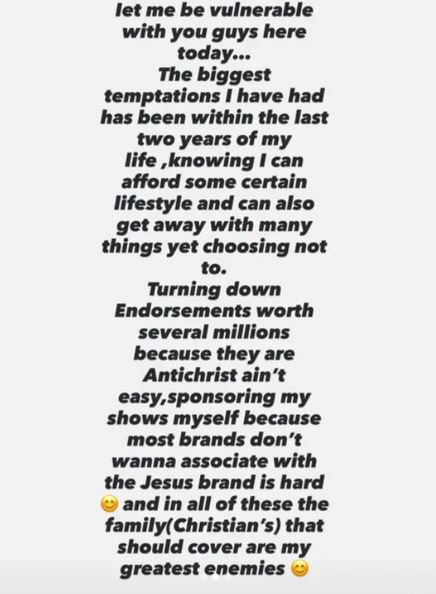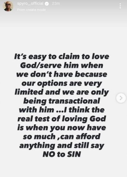 Nigerian singer Spyro has opened up in a vulnerable post about the challenges he encounters while striving to live according to his Christian faith.