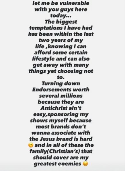 Spyro revealed that in the last two years, when he began to earn more and could afford certain lifestyles, he faced his biggest temptations. He said he has had to turn down endorsement deals worth millions of naira because they went against his faith, describing them as “Antichrist.”