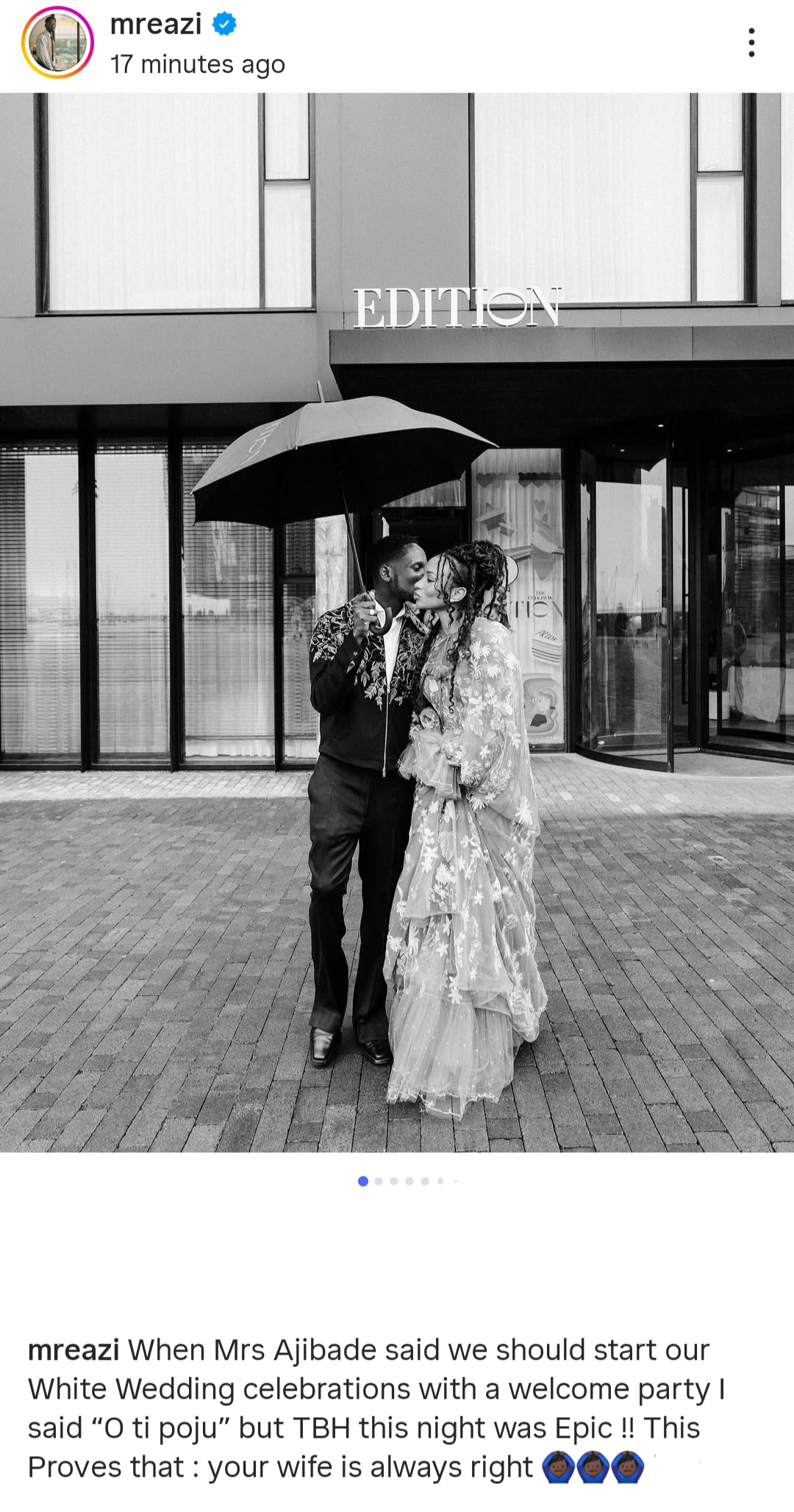 Mr Eazi has posted photos from the welcome party held for him and his wife, Temi.
